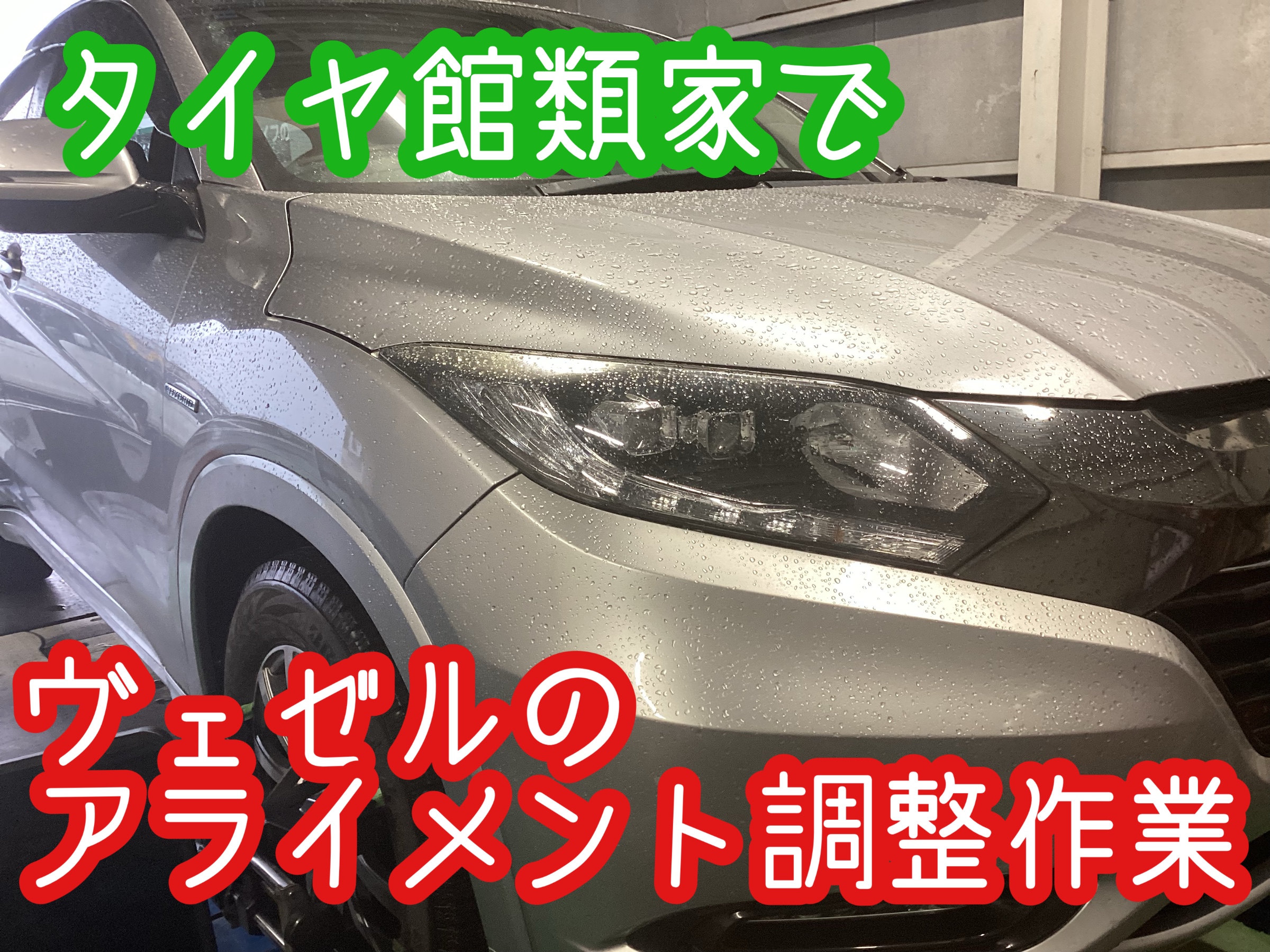 タイヤ館類家でホンダ、ヴェゼルのアライメント調整作業