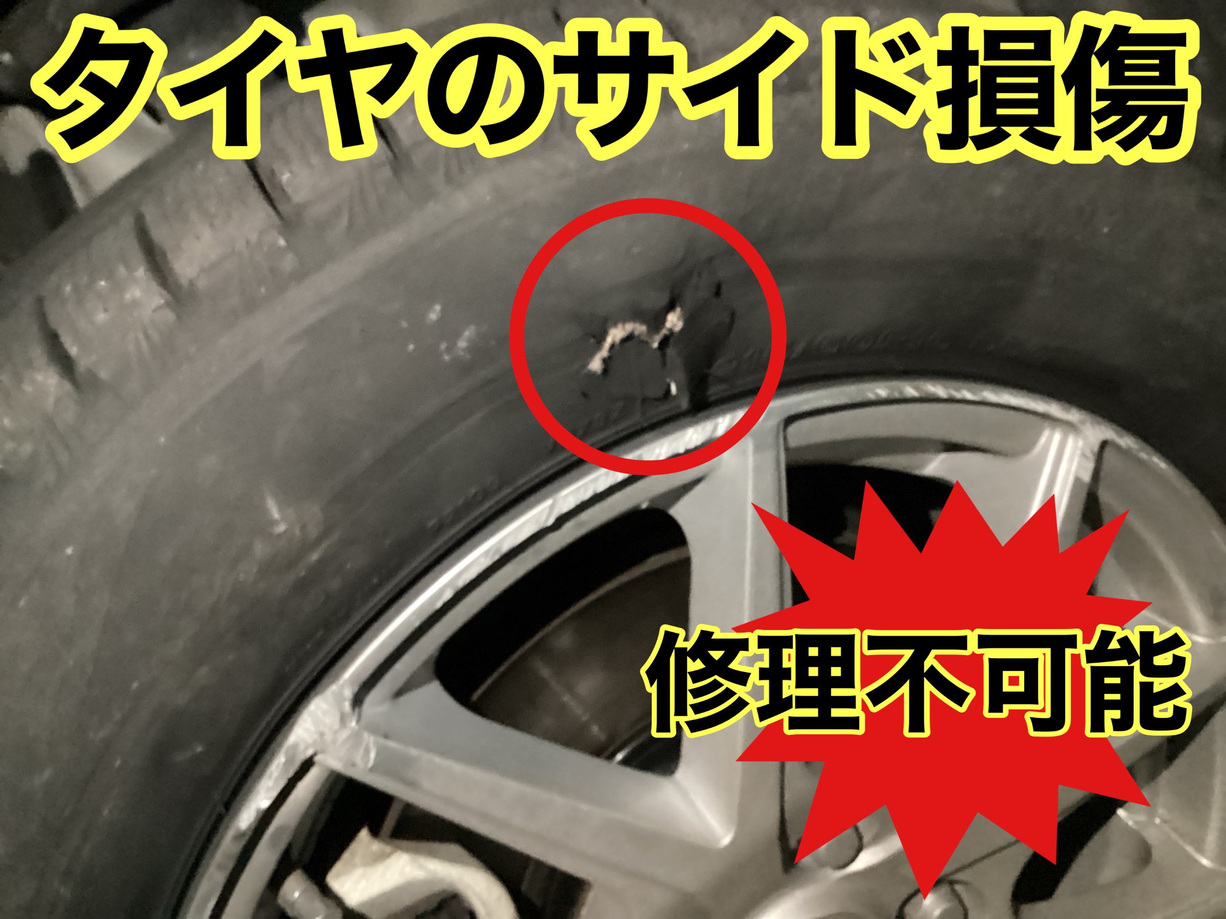 タイヤのサイドが損傷していました。