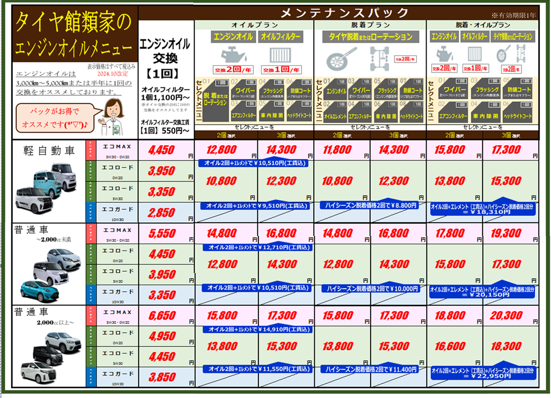 タイヤ館類家オススメ!メンテナンスパックはご存知でしたか?