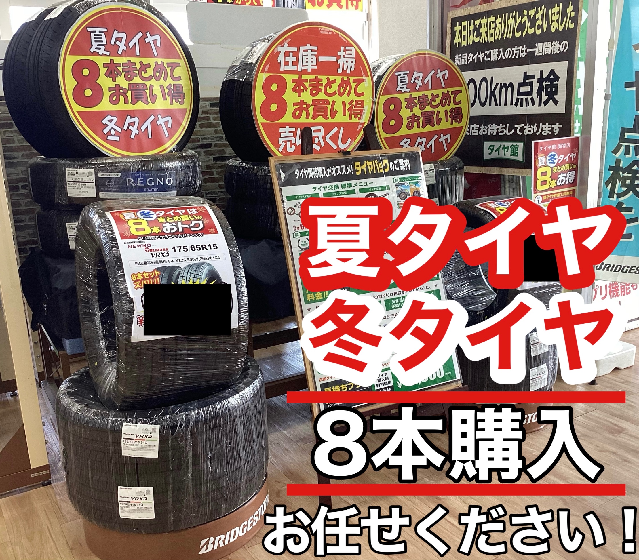 冬タイヤ、夏タイヤ同時に8本買いも出来ちゃいます!