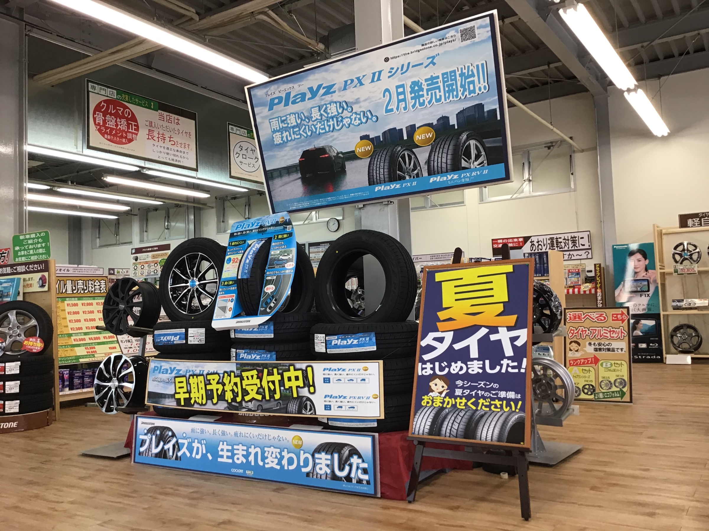 店内には、もう夏タイヤの展示をしています。