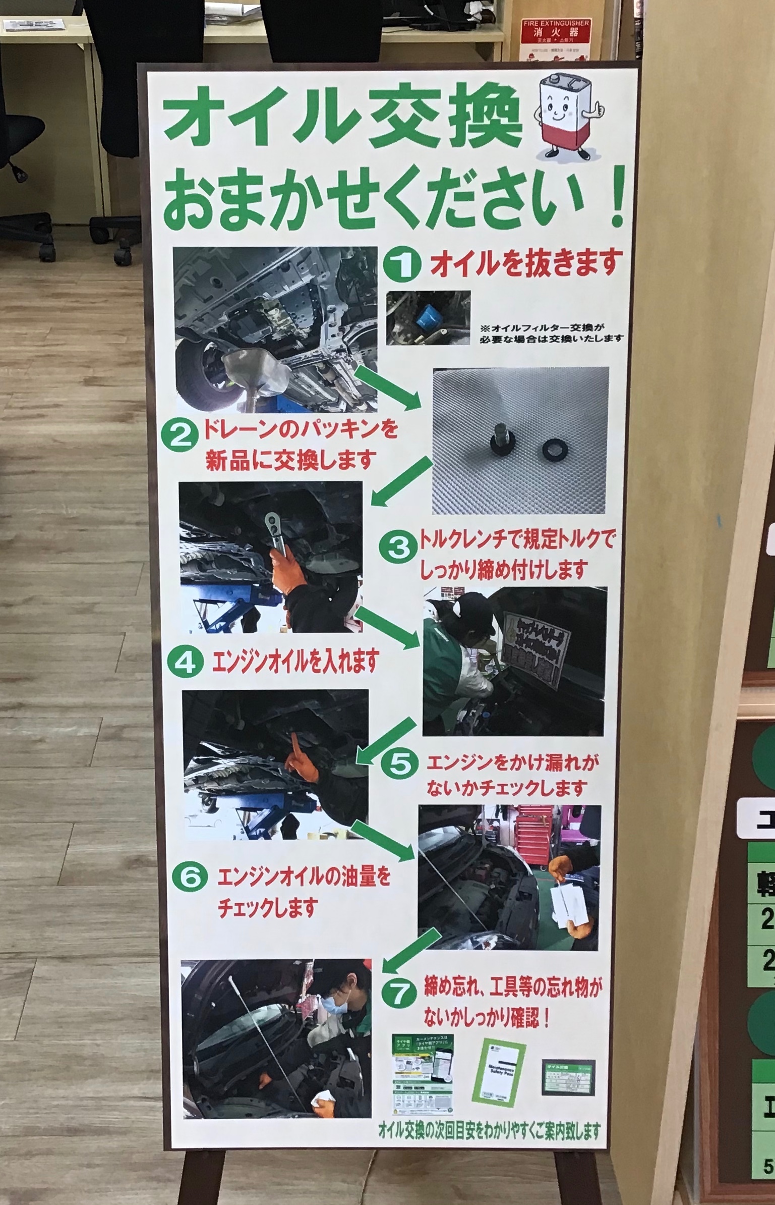 タイヤ交換はもちろん、オイル交換やバッテリー交換もやってます。