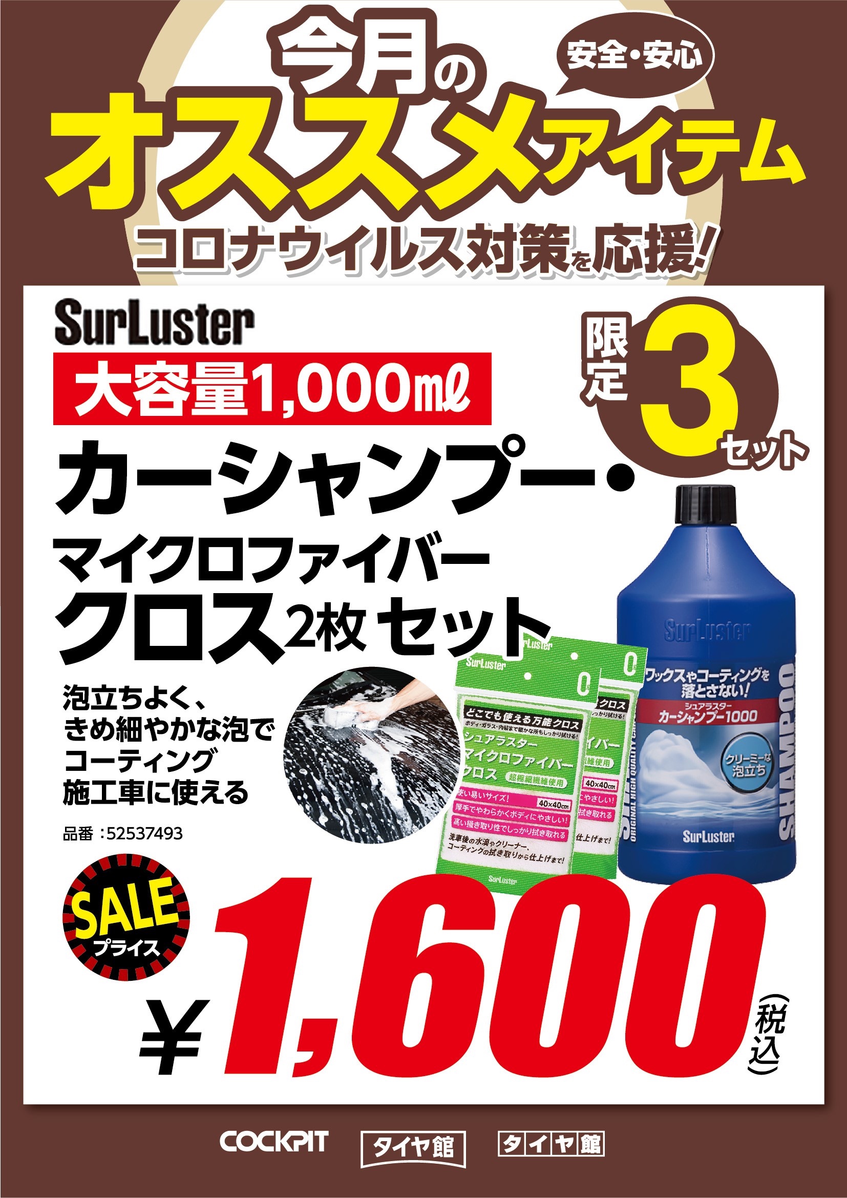 5月のおすすめアイテム② ポスト 2020年5月3日 こんにちは! スタッフトザワです(^◇^) 今日はとっても暖かいですね! 夏みたいな天気です。 本来ならお出かけ日和!と言いたいところですが、 緊急事態宣言も出ておりますので、皆さんおうちで素敵な時間を過ごしましょう(^O^) さて、今月のおすすめアイテムその②は、洗車グッズです!! コーティング車にも使える優れものです。 天気もいいので洗車日和ですね♪ こちらもレジ前で販売しております! 綺麗な車で快適なカーライフを送りましょう!