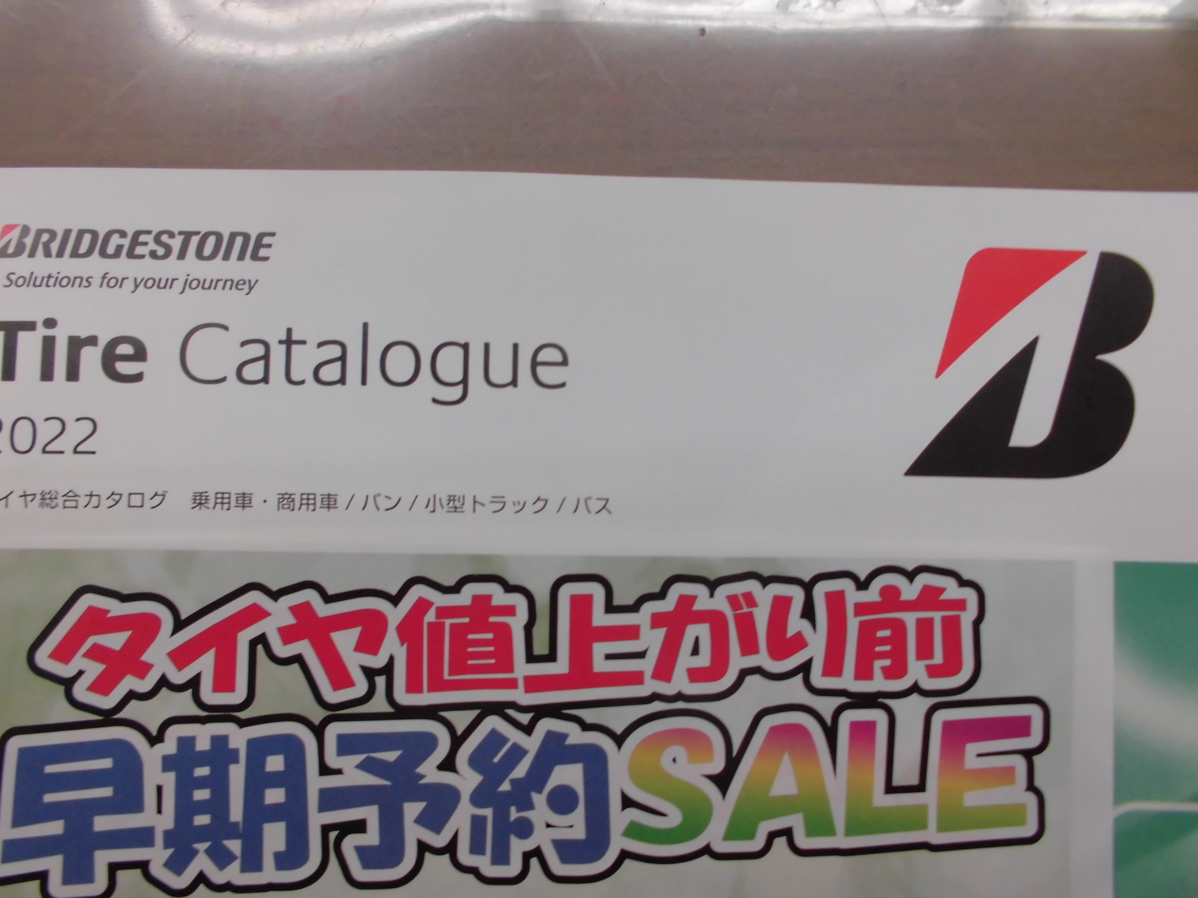 早期予約セール開催します ポスト 2022年2月25日 こんにちは。 2/26(土)より早期予約セール開催します。 ブリヂストンタイヤは4月より値上がりしますので 3月末までに予約頂ければ取付が4月以降でも 値上げ前の価格にて対応いたします。 夏タイヤをご検討の方は是非この機会にお求めください。