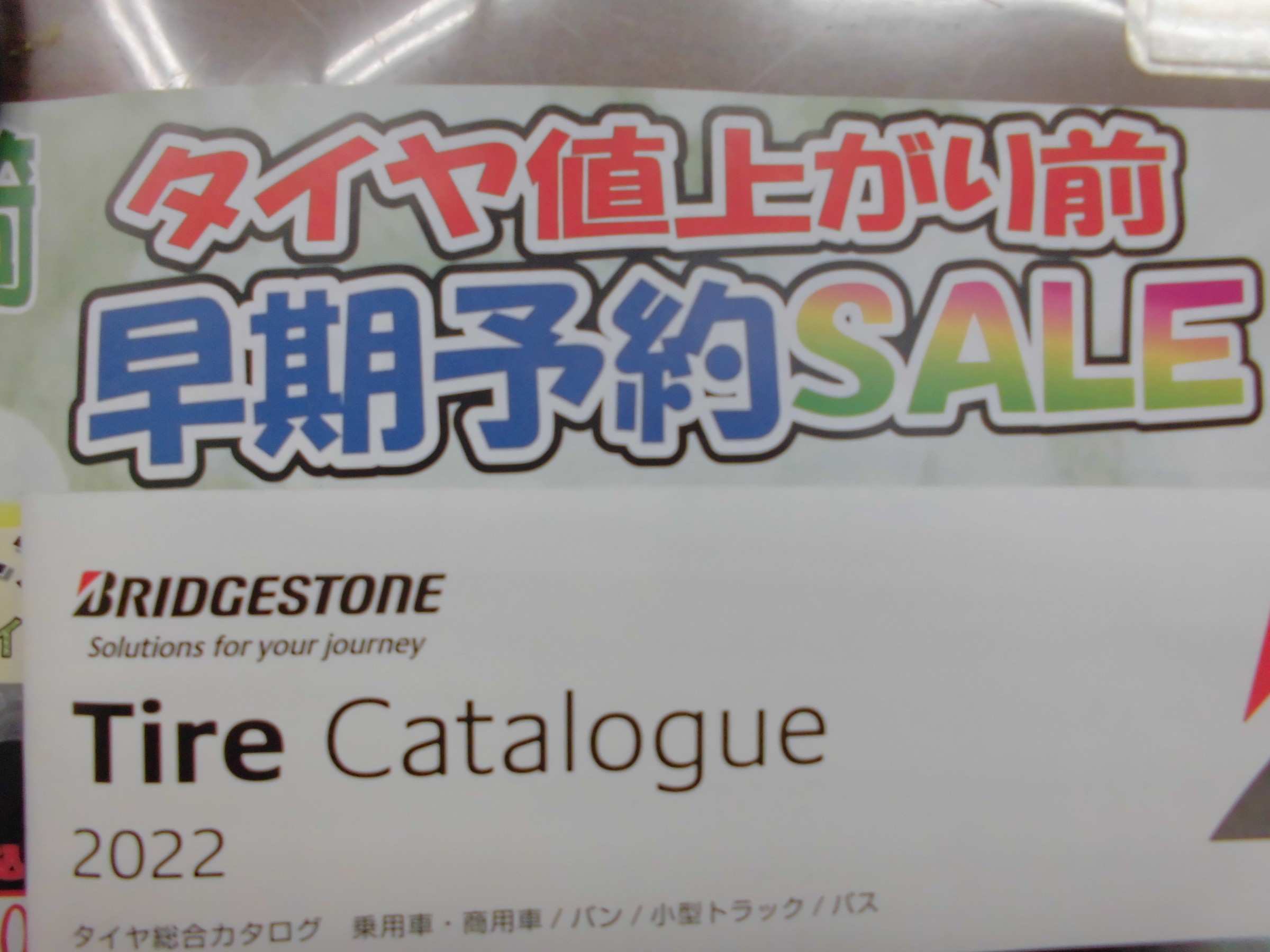 タイヤ値上がり前 ポスト 2022年3月18日 こんにちは。 3/19(土)より3/31日までタイヤ値上がり前 予約セール開催します。 夏タイヤご検討中の方は是非この機会にお求めください 予約頂ければ作業は4月にはいってからでも大丈夫です。