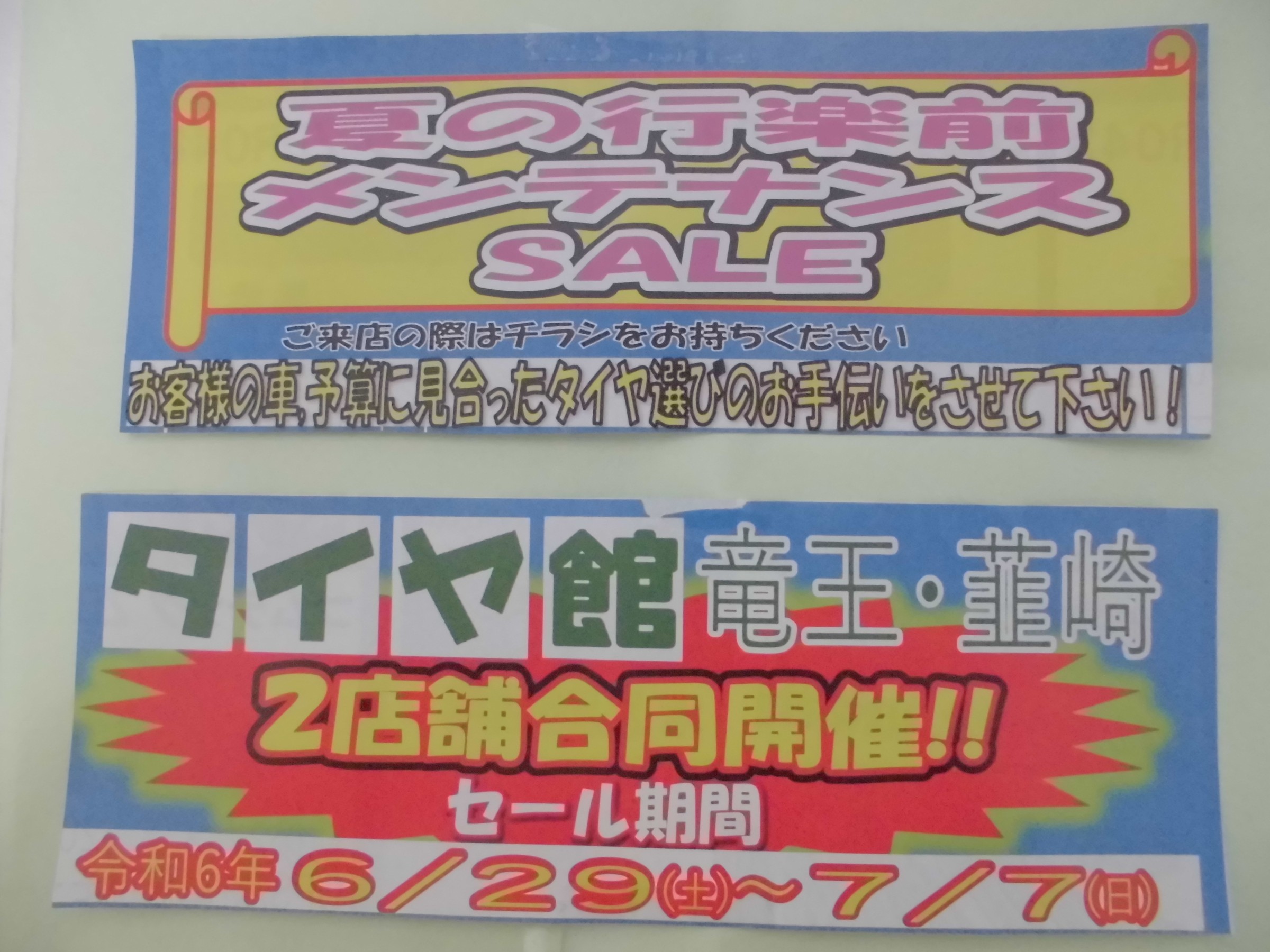 夏の行楽前メンテナンスSALE! ポスト 2024年6月29日 こんにちは! 本日から竜王店では韮崎店と合同でメンテナンスセールを開催します。 夏の行楽前に愛車のメンテナンスを是非当店にお任せください! 点検も無料でやってますのでお気軽にご来店ください。