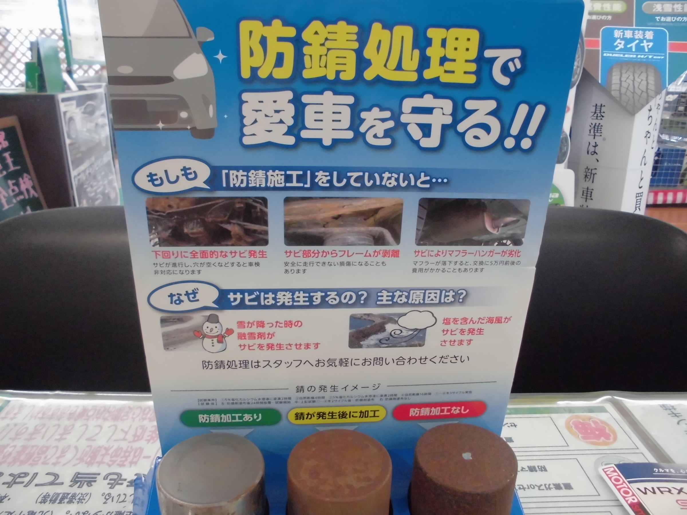 当店おすすめ ポスト 2017年7月4日 こんにちは♪♪ 7月に入りむし暑い日が続いていますね~ もうすぐ夏休み。家族や友達と海や山などへお出かけの計画をたてる方も多いかと思います。 お出かけの前に当店オススメのマフラー防錆コーティングはいかがですか?? 特に海に行く方には本当におすすめです。 興味のある方、ぜひ当店にお気軽にご来店下さい。