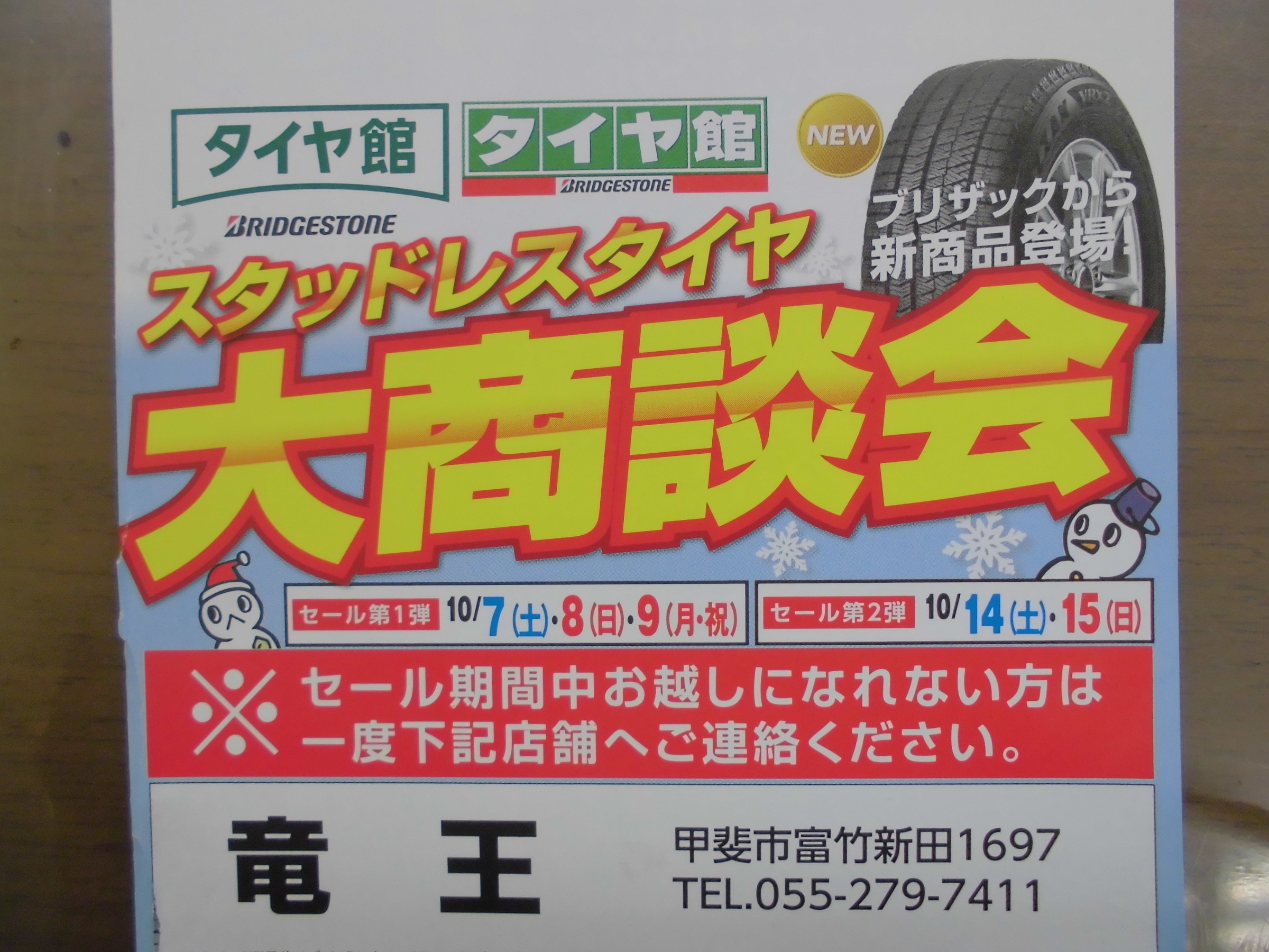大商談会♪ ポスト 2017年10月3日 こんにちは!早いものでもう10月 朝晩もひんやりして来ましたね いよいよ今週の土曜日より★スタッドレスタイヤ大商談会★を開催致します。 期間中はスタッドレスタイヤ・アルミホイールなどが大奉仕価格!! *ぜひこの機会をお見逃しなく* スタッフ一同皆様のご来店お待ちしております♪♪