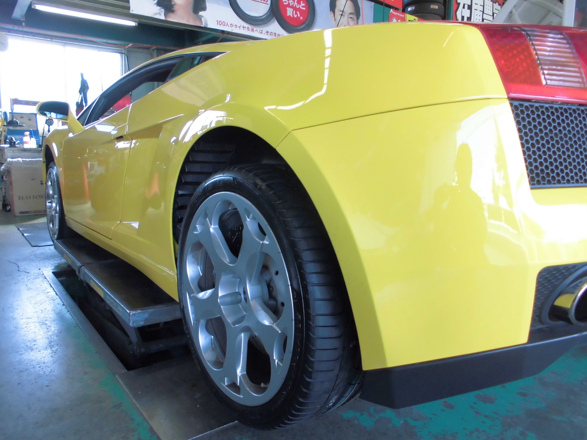 スーパーカー ポスト 2019年5月28日 こんにちは ここのところ2.3日は真夏日でかなり暑くなってますが みなさん体調などは大丈夫ですか? 今日は先日ご来店いただいたスーパーカーのタイヤ交換です ランボルギーニのガヤルドです タイヤ2本交換していただきました