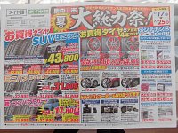 こんにちは。 明日7月17日より 夏の大総力祭 を開催します お買得価格にてタイヤ、ホイールやドライブレコーダー などの電装品も販売しますのでご来店ください
