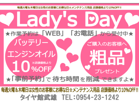 コクピット・タイヤ館は“平日”がお得!『平日割』実施中!