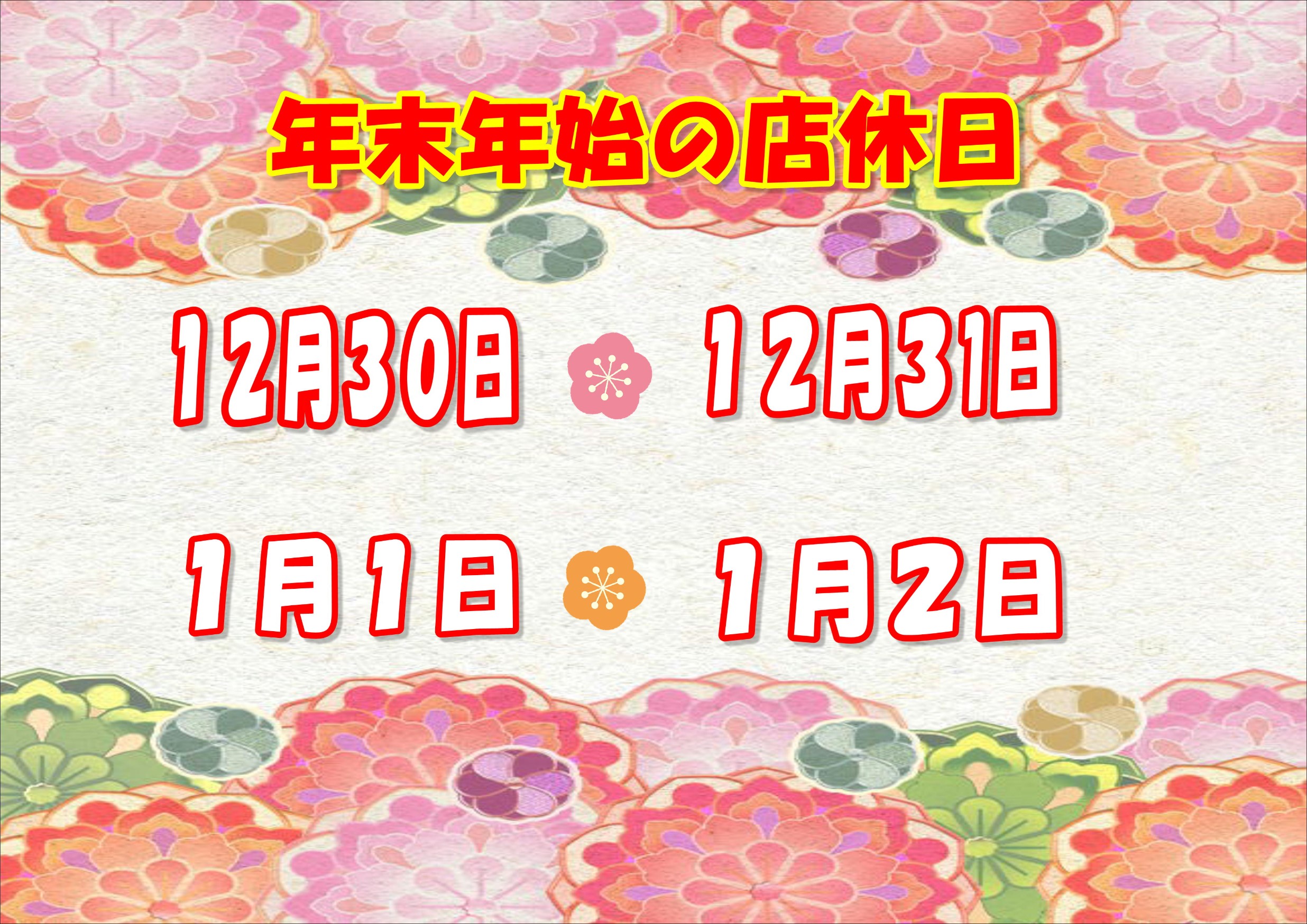 また、年末年始の店休日は