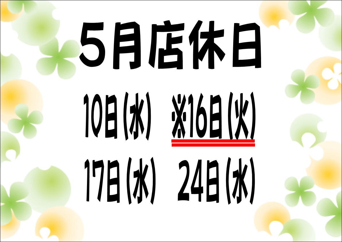 明日5月24日(水)は店休日となっております。