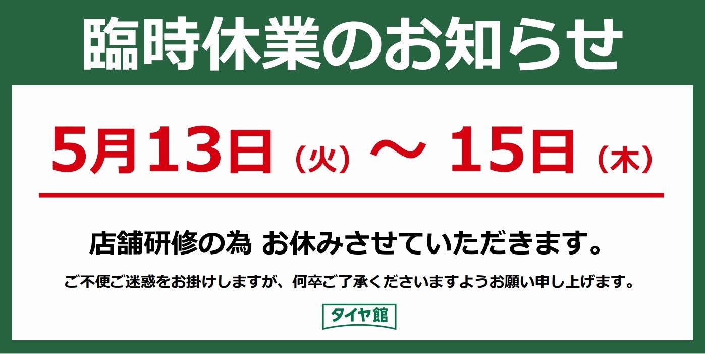 5月の店舗営業に関して、下記日程を社員研修の為臨時休業とさせていただきます。