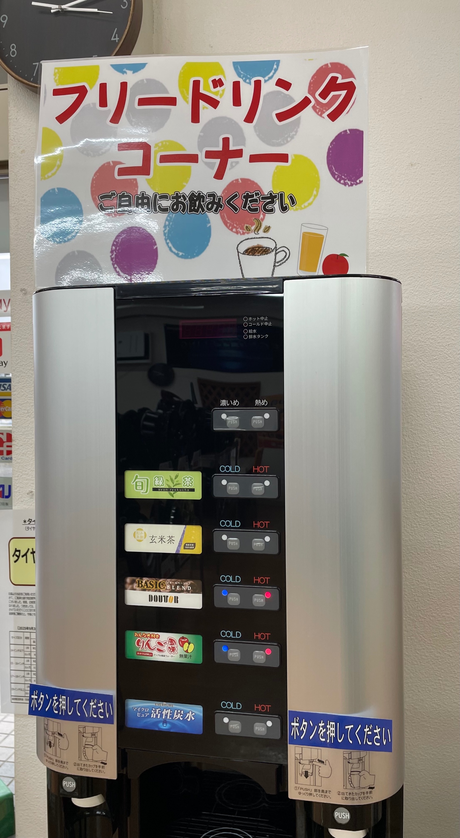 フリードリンクコーナー新しくなりました!! ポスト 2026年3月1日 こんにちはいつもタイヤ館武雄のWEBをご覧いただきありがとうございます。 フリードリンクコーナーが新たに種類を増やして再登場しました。 作業待ちの間にホッと一息しませんか?ご来店の際はぜひお召し上がりください(^^) ドリンクの種類が大人からお子さままでみんなが飲めるように♪ コップは手動なのでボタンを押していただきます。 コップを手に取り、円に置いてください。お好きなドリンクをお選びください。