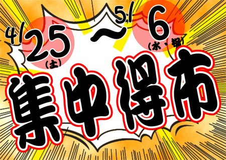 武雄店では 本日4/25(土)~5/6(水・祝)まで 【集中得市】を開催します!!