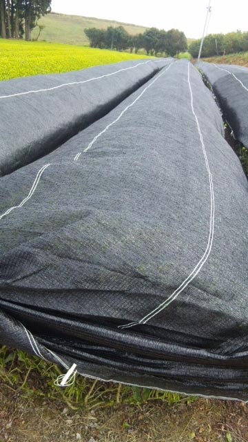 収穫前の色付けするためのネットを掛けた状態です)