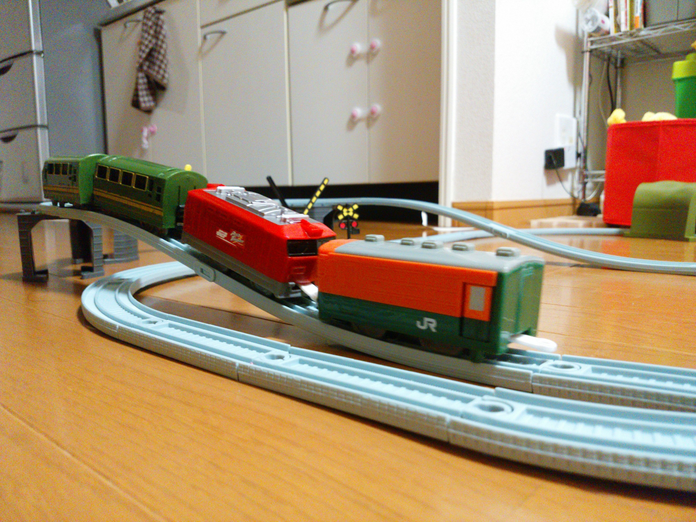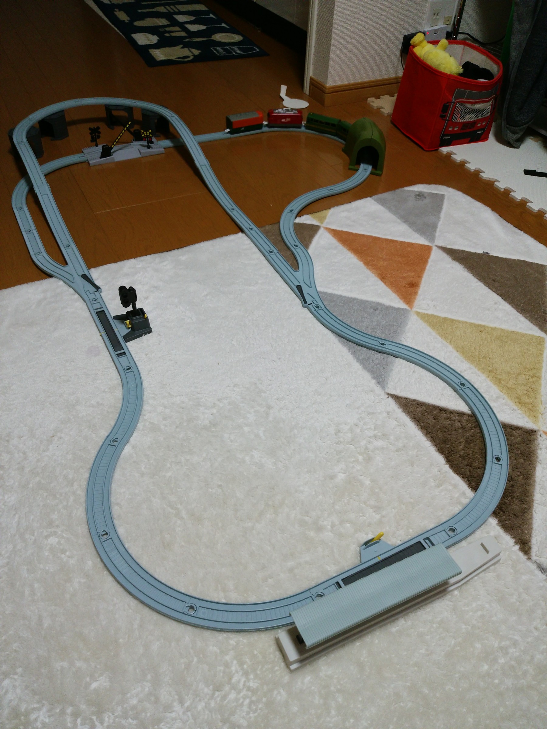 息子が喜ぶので、プラレールを組んで、走らせてみました。