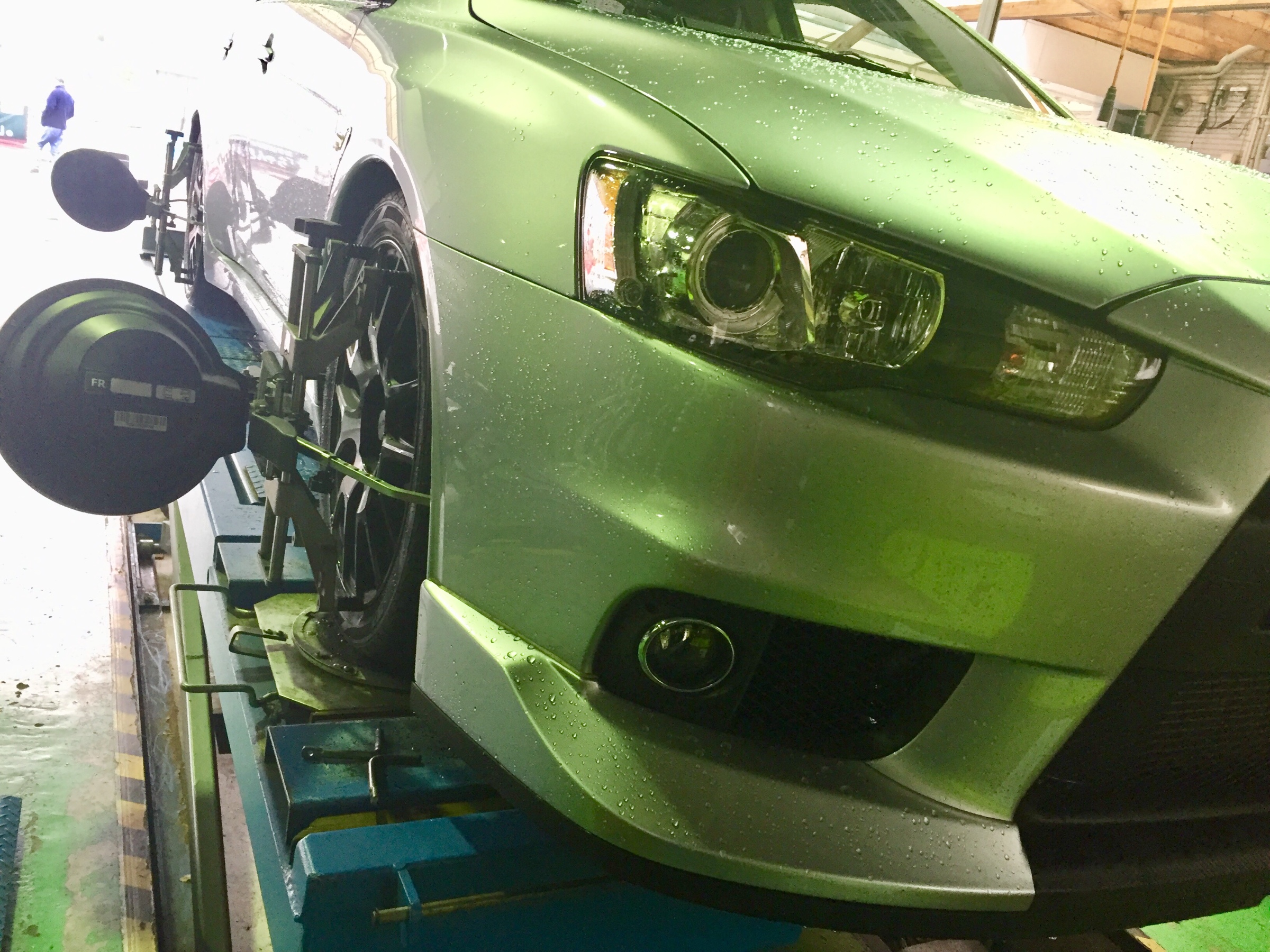 車高調整の足廻りを取り付けされてましたので、キャンバーハの字
