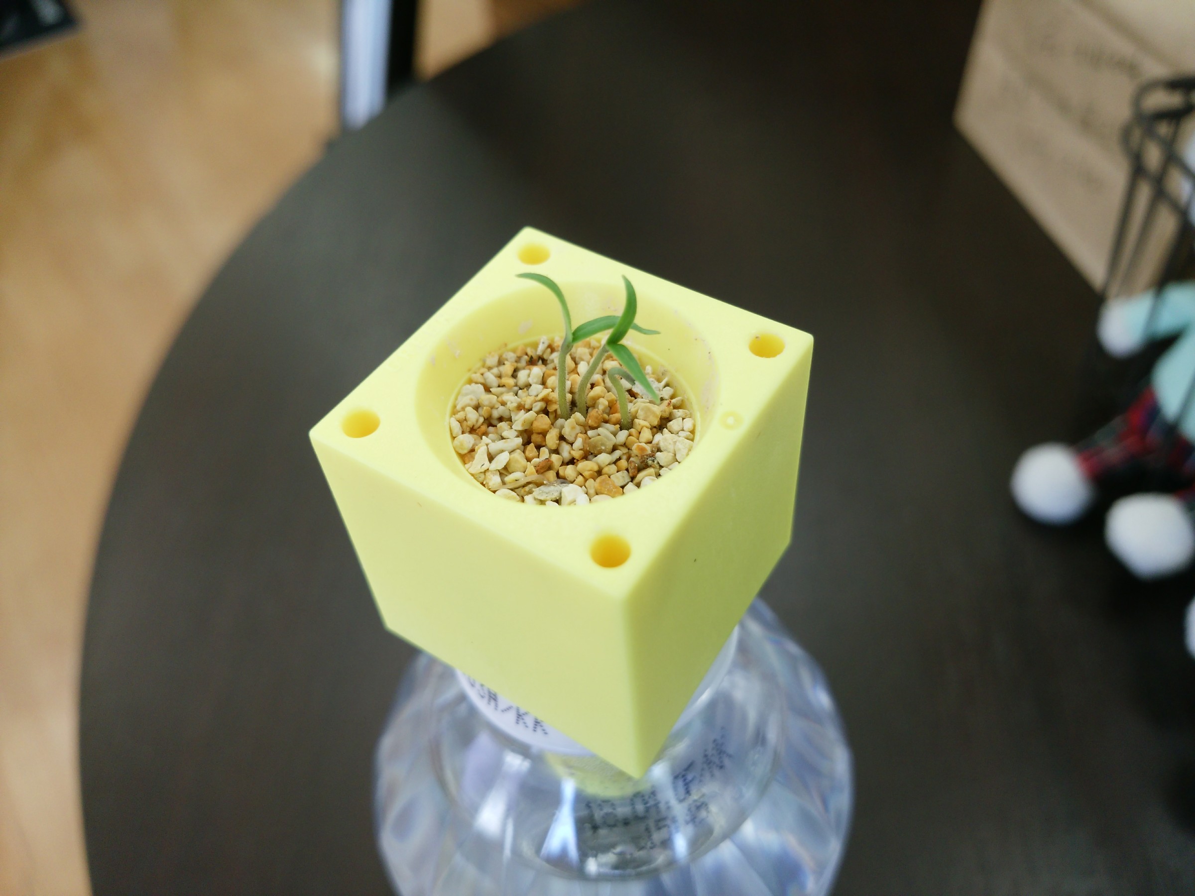 仕事帰りにコンビニによったら、ペットボトルで育てられるトマトの種を発見!!