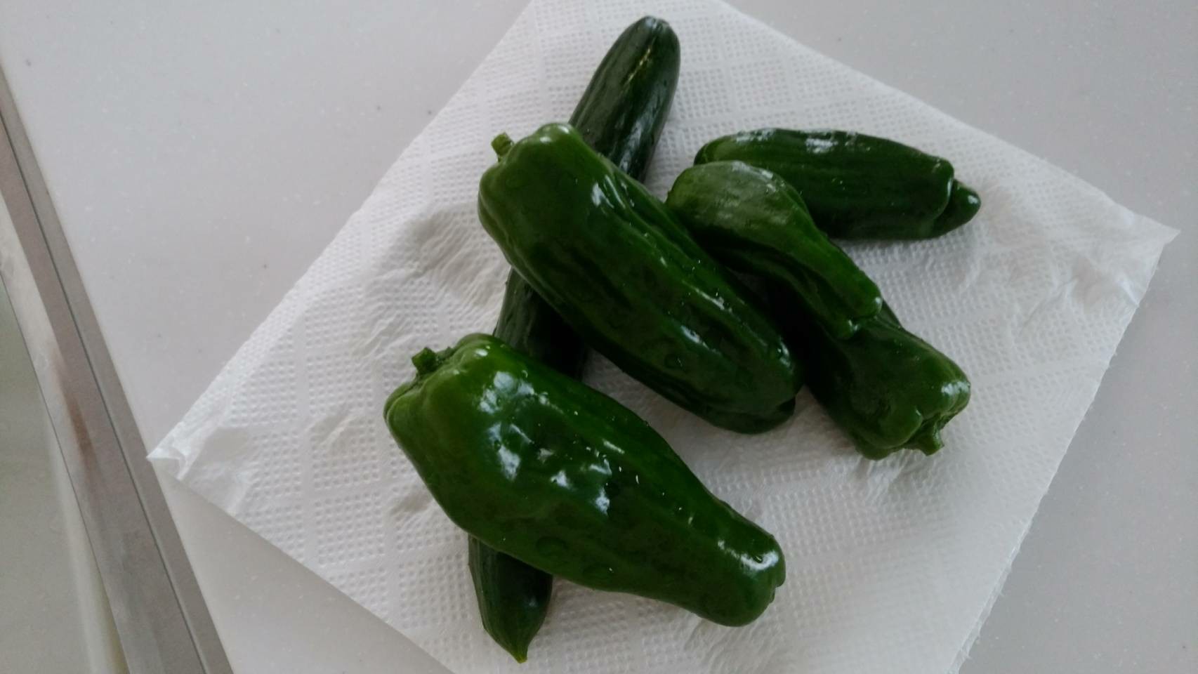 自宅で嫁が家庭菜園しているのですが、本日ピーマンとキュウリが収穫出来ました。