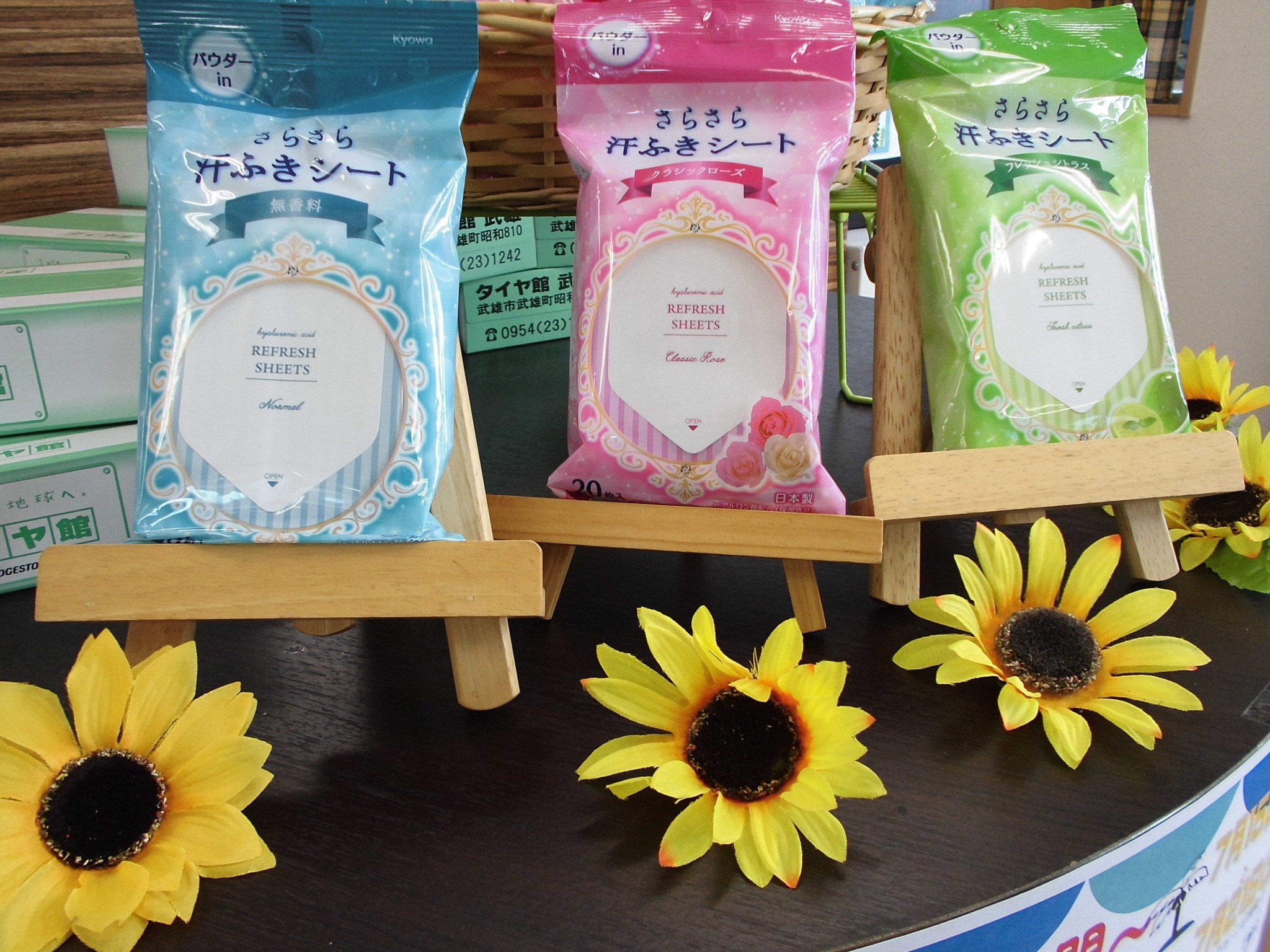 期間中、ご購入頂いた方にさらさら汗ふきシートプレゼントしてます。