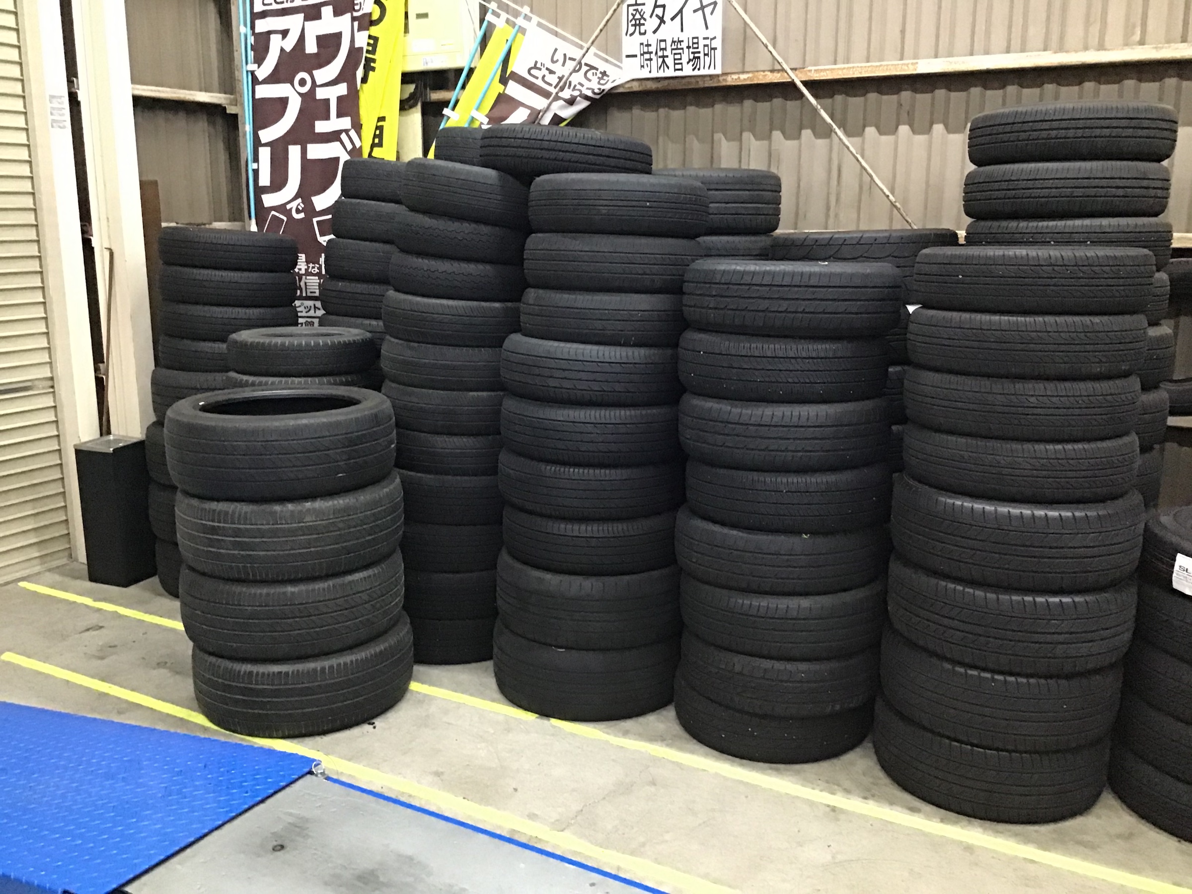 山積みになってます ポスト 2020年7月20日 今週もまたまた引退したタイヤがどっさり。 溝がないタイヤは雨の日に滑りやすくなります。 最近、愛車のタイヤチェックしましたか? 4連休の前にチェックしましょう。 担当:長内