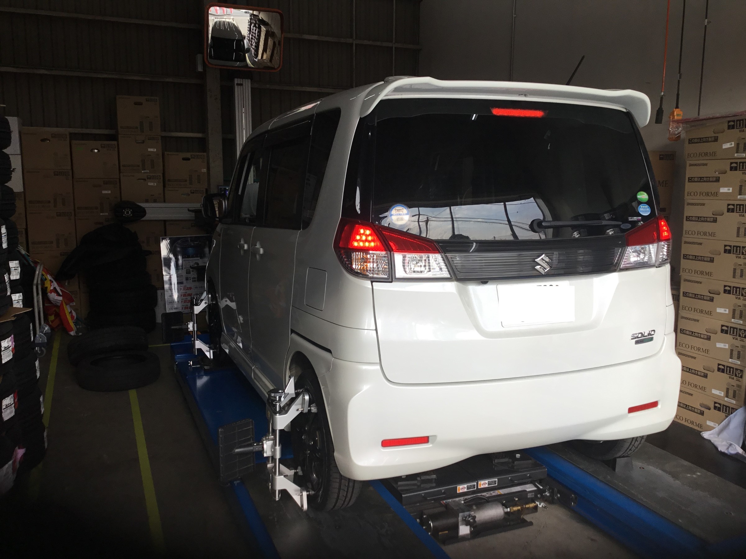 ソリオでタイヤ交換&アライメントを実施。