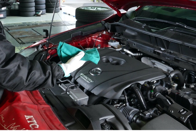 そして、タイヤやバッテリーよりも交換頻度が高いのに、ついつい忘れがちなのがエンジンオイルの交換です。エンジンオイルの働きは、「潤滑」「密封」「清浄分散」「冷却」「防錆・防蝕」「応力分散」という「6大作用」なんて呼んだりしますが、より簡単に説明すれば、エンジンを保護し、動作をスムーズにする作用、エンジン内部の汚れを流し、そして冷却する作用などがあります。これらの作用は走行や経年により性能が低下するため、当店では、エンジンオイル交換を3,000km~5,000km程度の走行を目安に、もしくは3ヶ月〜6ヶ月にておすすめしています。ご使用のエンジンオイルやクルマの使用状況により劣化の度合いは異なりますので、エンジンのコンディションを良好に保つために、定期的な交換をお声掛けしています。