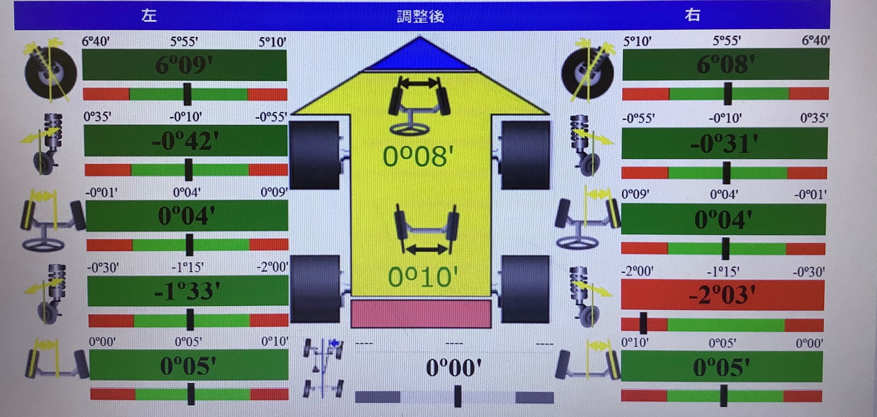 60ハリアーは前後トーが調整出来るのでしっかり合わせます!