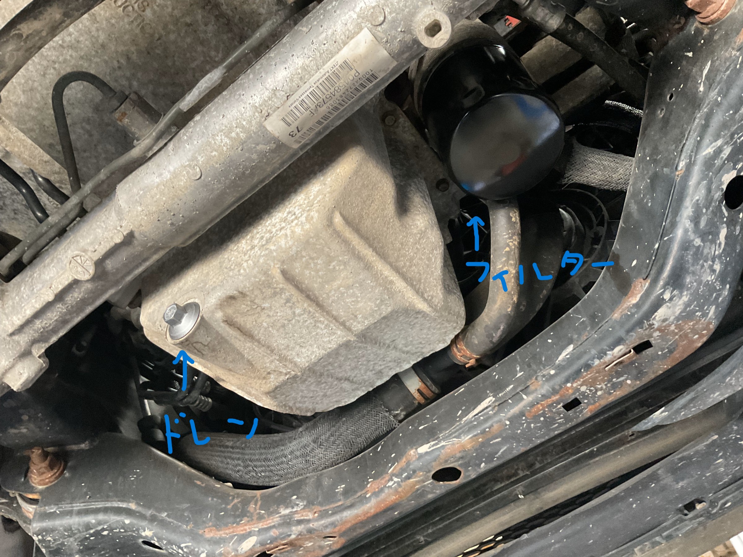 オイル交換は通常の国産車と同じくこちらのドレンからオイルを抜き