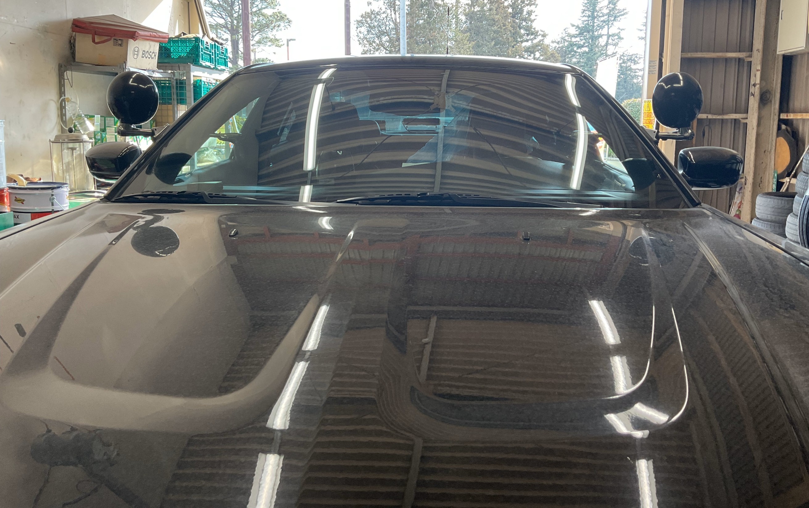 ミラーの上に内側から動かせるライト、ルーフにアンテナ…