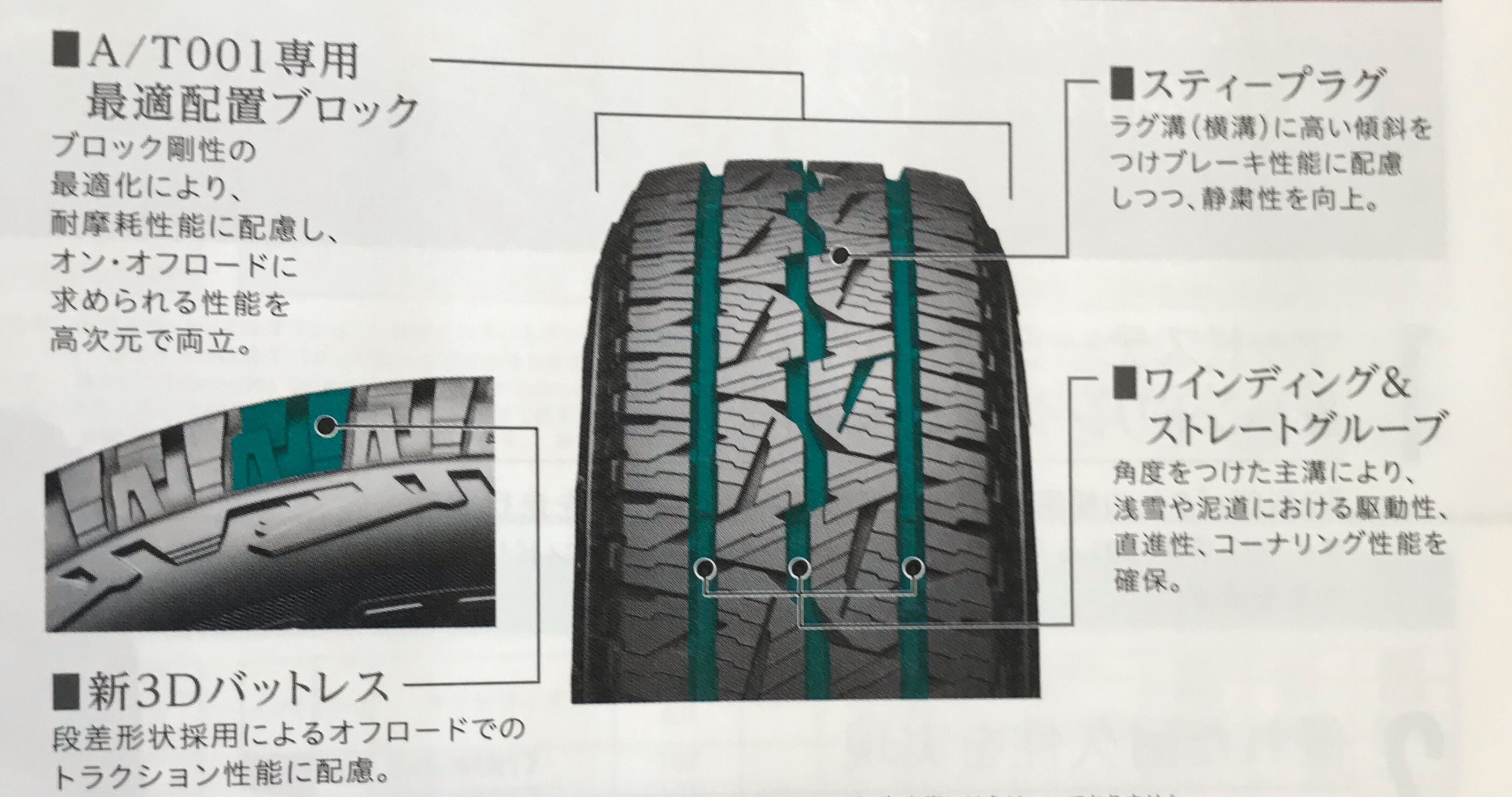 DUELER A/T001 ポスト オン&オフロード 様々な道での走破性と快適な走りを両立し、 低燃費性能やライフ性能にも配慮した オールステージタイヤ 関連情報もあわせてご覧ください カテゴリ:商品情報 タイヤ関連