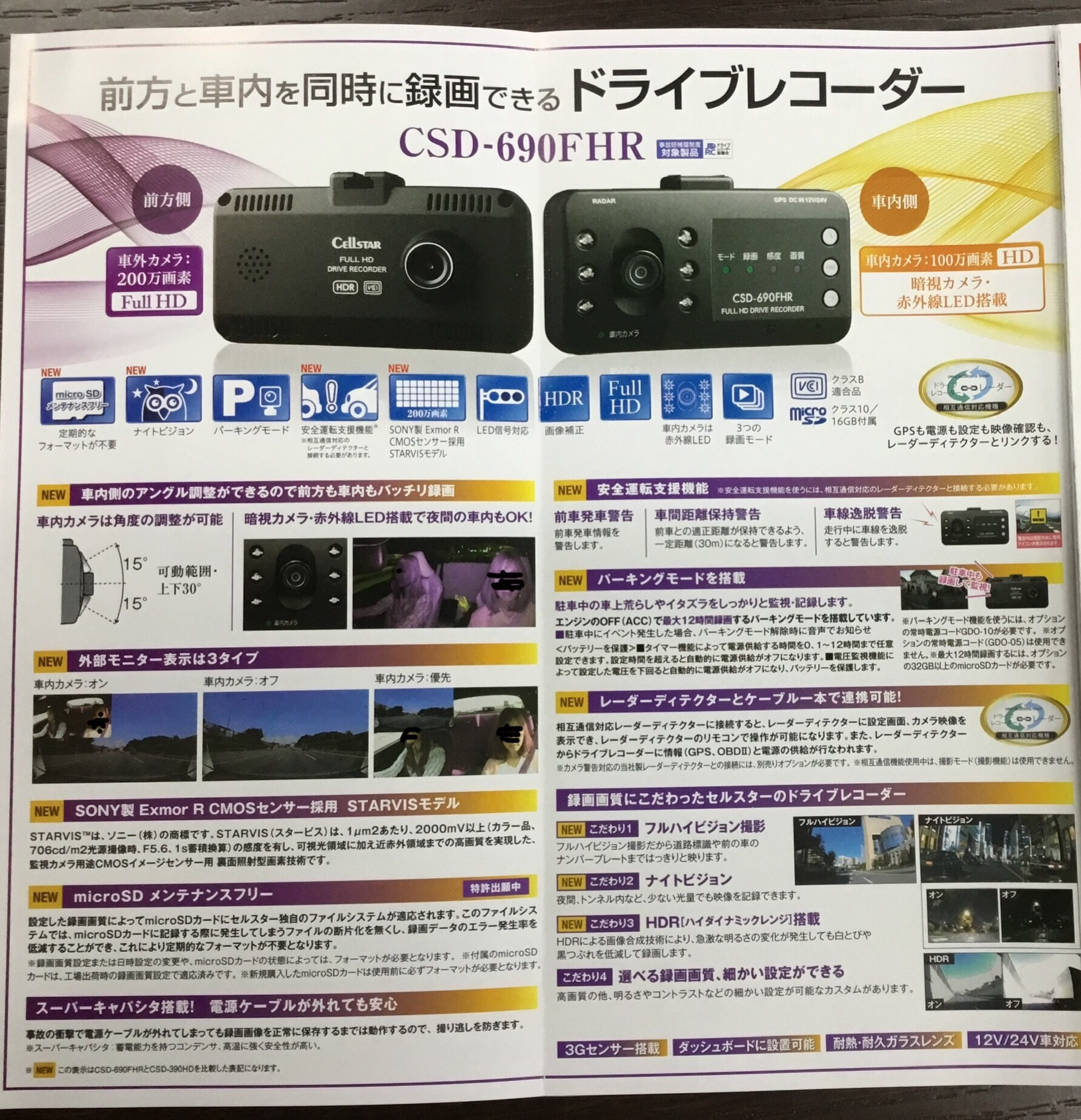 こちらのカメラ車内が映せる!そうですニュースでよく見かけたあの映像がこちらの機種で出来るんです。