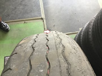 タイヤからワイヤーがでて、しかも→のあたりが変形しちゃってます。 あとちょっと遅かったら・・・バーストしていたかもしれません。 これから、春休み。遠出の前にはタイヤの点検/エアーチェックをお忘れなく。 当店では無料で点検させていただいております。 お気軽に、思いついたら寄ってみてく...