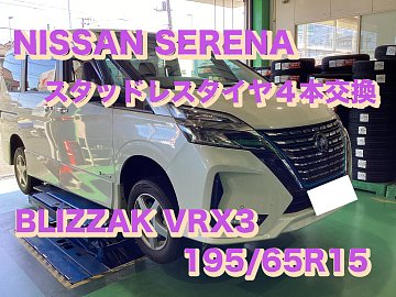 日産・セレナ スタッドレスタイヤ4本交換 BLIZZAK VRX3 195/65R15