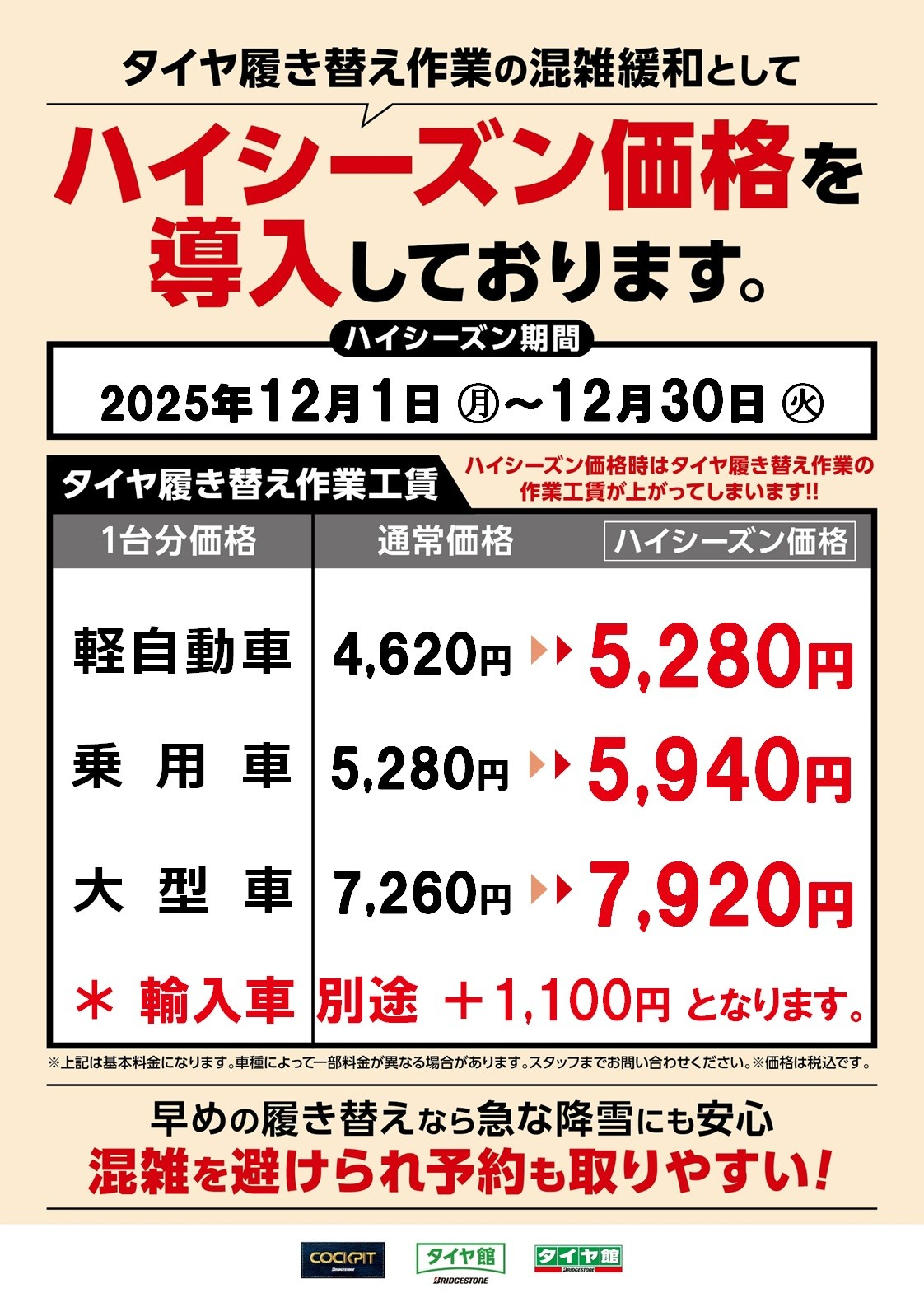 コクピット・タイヤ館年末大感謝キャンペーン開催!