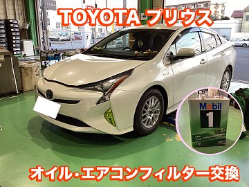 トヨタ プリウス オイル交換 Mobil1 0Wー20 エアコンフィルター交換 AFS-T10