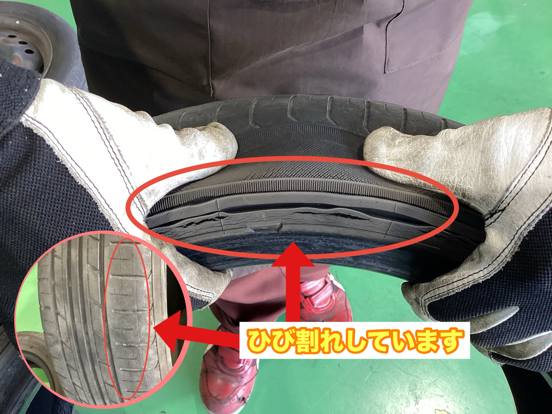 タイヤのひび割れが気になるので点検してほしい。と、ご来店いただきました。
