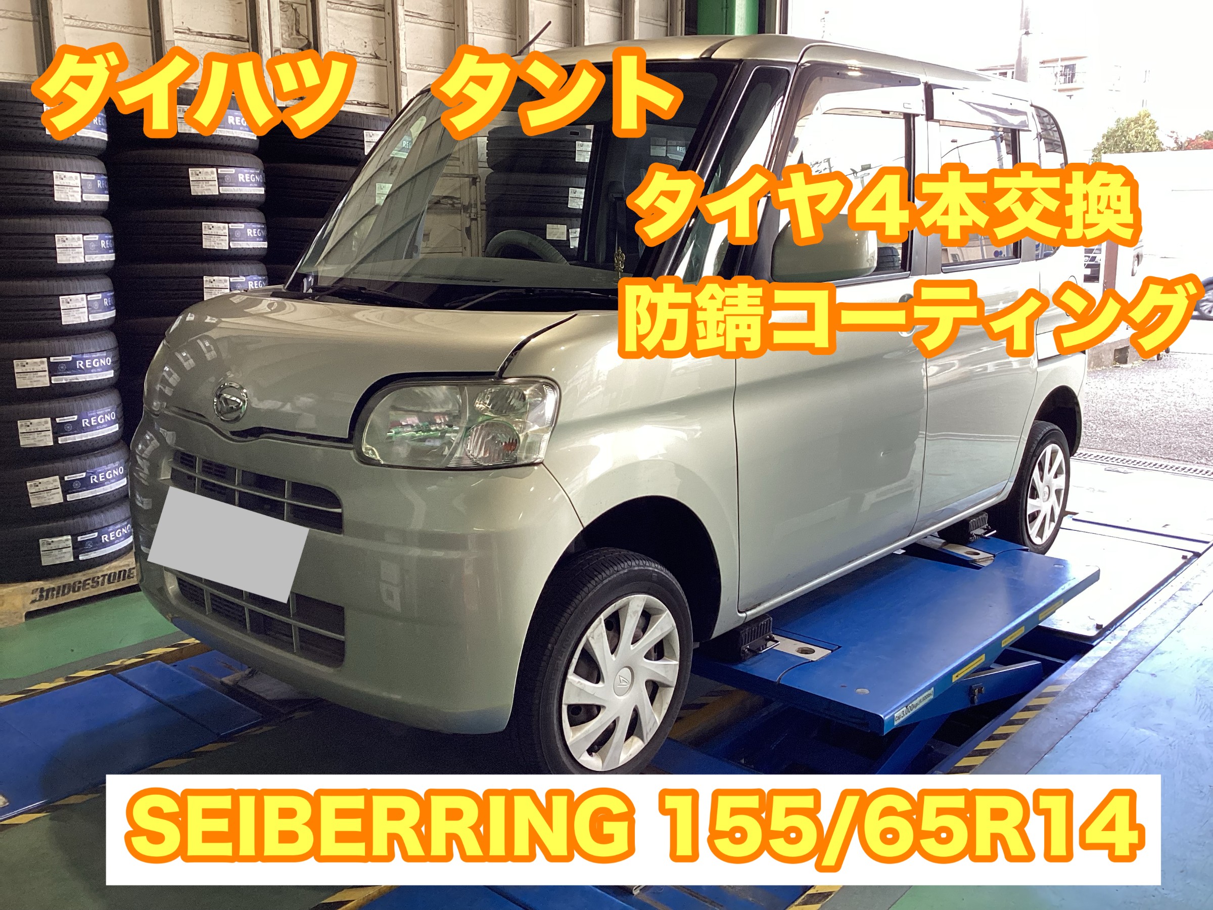 ダイハツ・タント タイヤ4本交換 SEIBERLING 155/65R14 防錆コーティング
