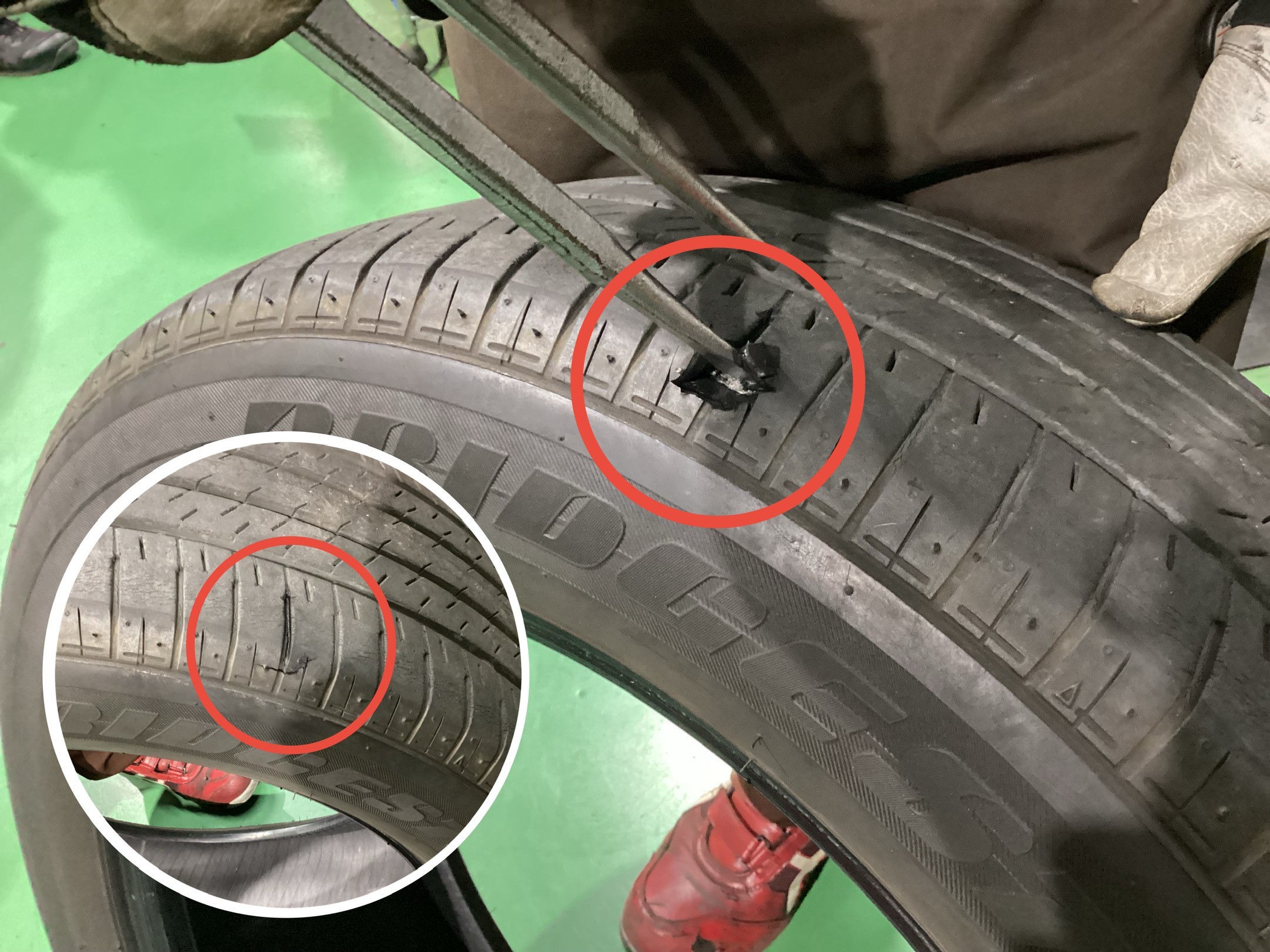 パンク修理では対応できず、新品交換となるケース