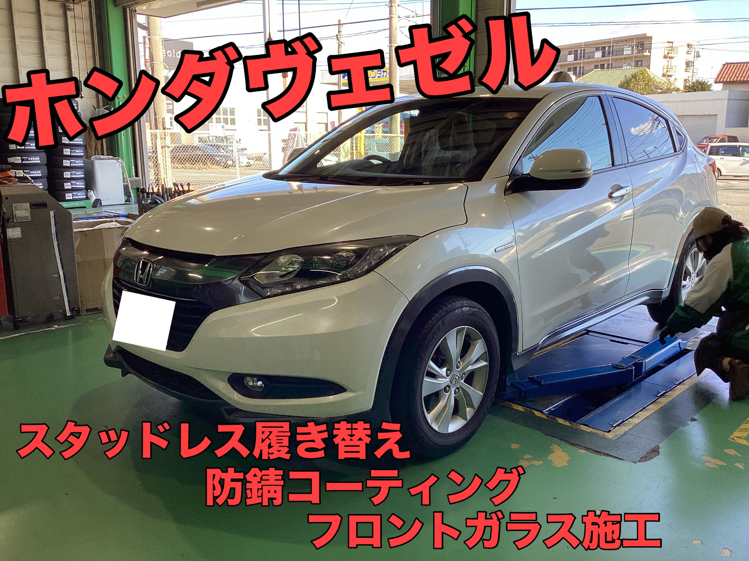 ホンダ ヴェゼル スタッドレス履き替え、防錆コーティング、フロントガラス施工