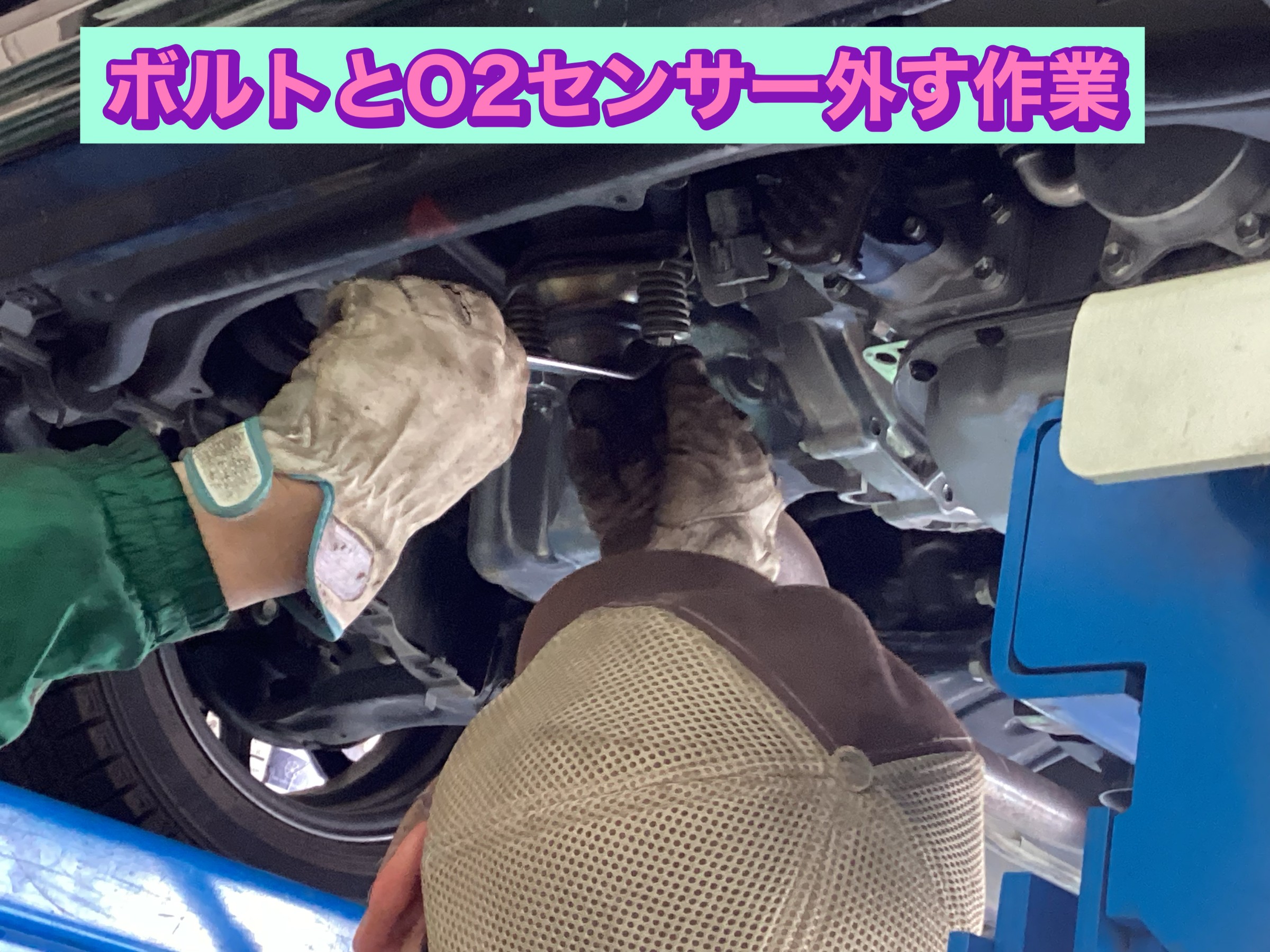 今回はマフラー全体の交換になりますので各ボルトとO2センサーを外します。