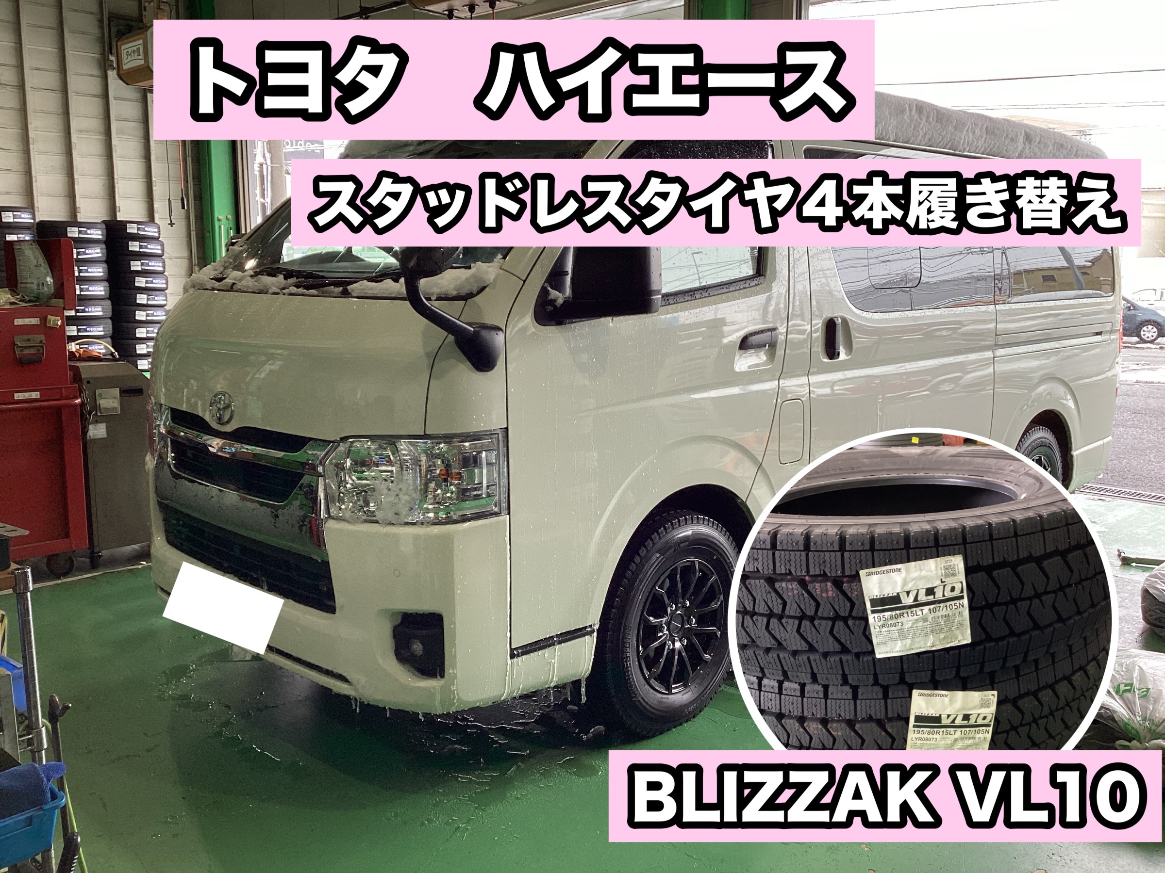 先日、トヨタ・ハイエースのスタッドレスタイヤ4本交換を実施しました!