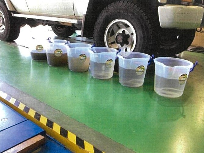 左から1番目の洗浄時排水で、右に行くにつれてキレイになっていくのが分かると思います。