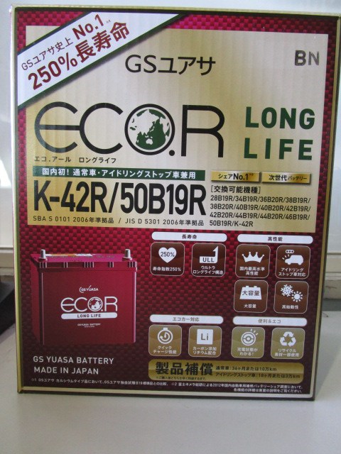 GSユアサ の エコRロングライフは アイドリングストップ車にもご利用いただけるスグレモノ!!