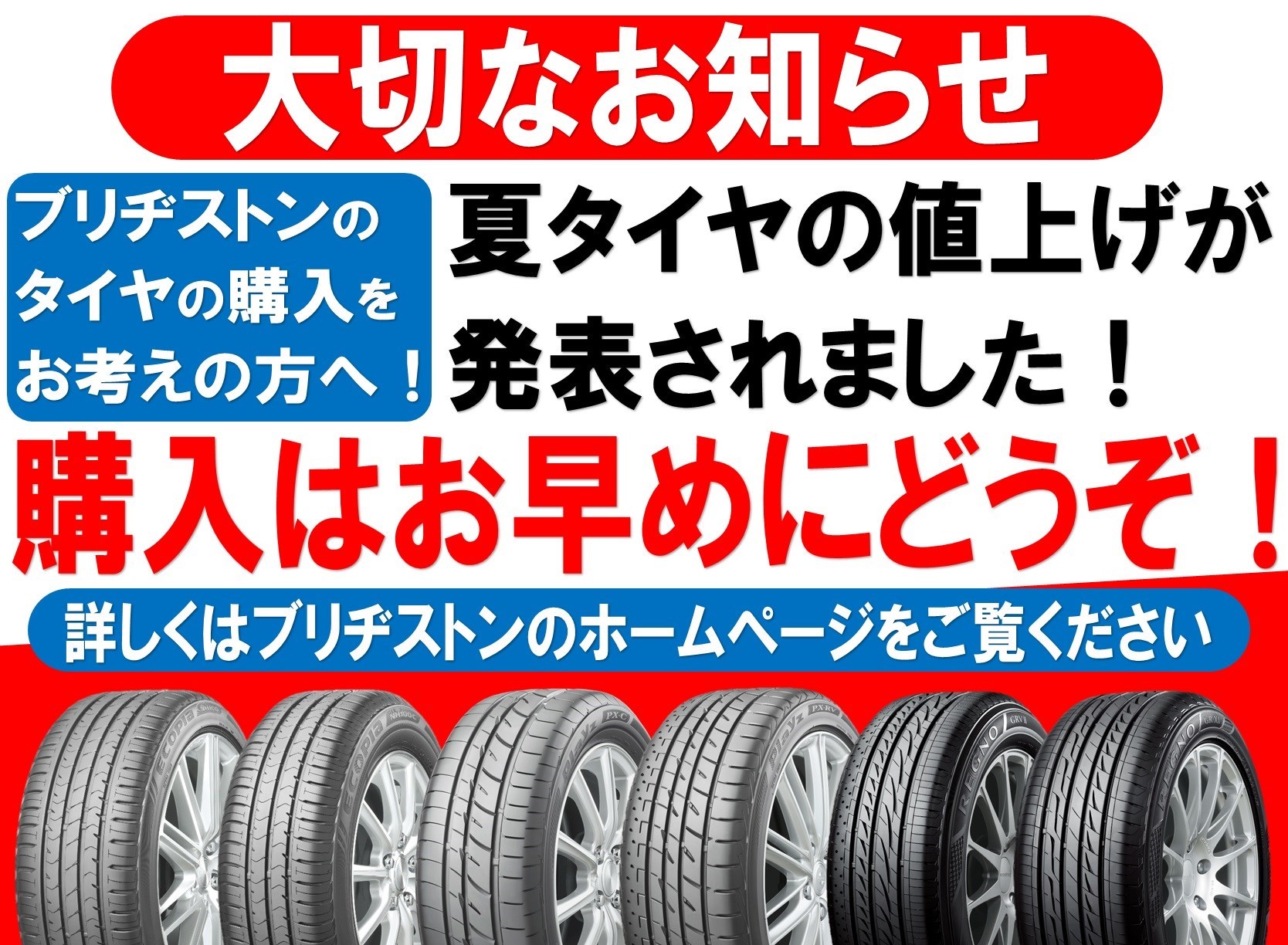 タイヤのことならブリヂストンのタイヤ館へ