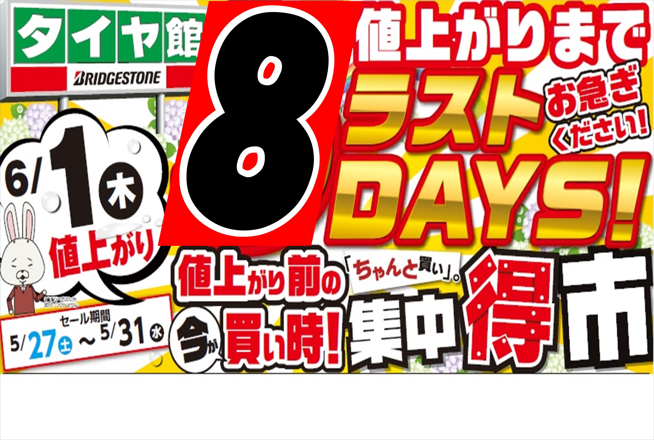 もうすぐ夏用タイヤ値上げです!ご検討はお早めに!