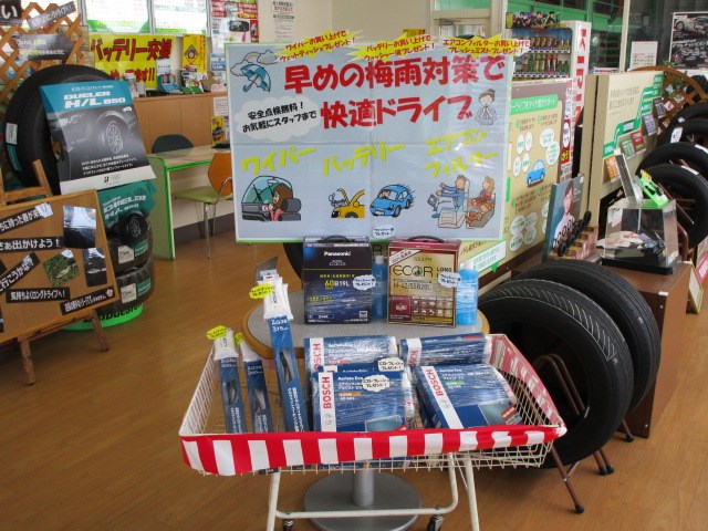 梅雨に入る前にワイパー、バッテリー、エアコンフィルター、などの点検は