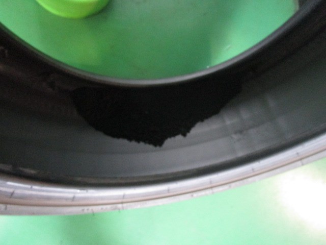 タイヤをよーく見てみると内側がこんな状態に・・・・・空気圧が低下した状態でだいぶ走られてたようです。
